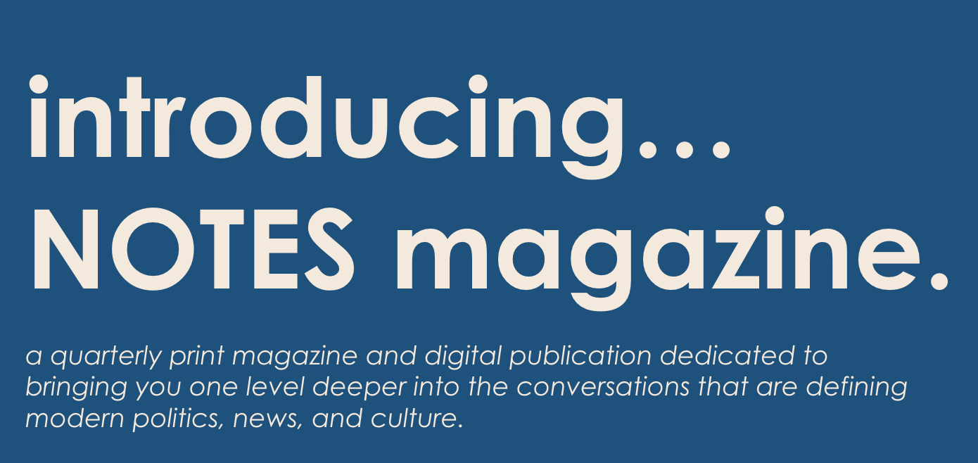 For a brief window of time, American culture was defined not just by political leaders but by a group of multi-racial creative intellectuals, activists, and everyday people. They used their voices to turn a mirror toward both the minutiae and injustices of their time, documenting their experiences through writing, music, and other art forms. NOTES Magainze seeks to honor this tradition while updating it for the twenty-first century, drawing inspiration from James Baldwin’s “Notes of a Native Son” essay collection.